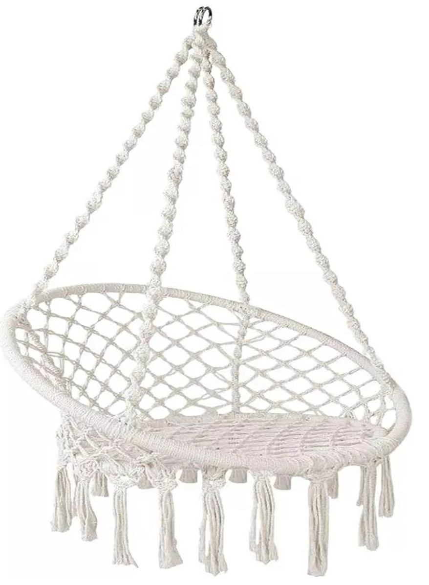 Get ready to swing in style with our 100% Cotton Macrame Swing in a chic off-white color! Made with quality cotton fibers, this swing offers the perfect combination of comfort and style. Perfect for any home or outdoor space, enjoy the benefits of relaxation and lounging with our Macrame Swing. (Pun intended).