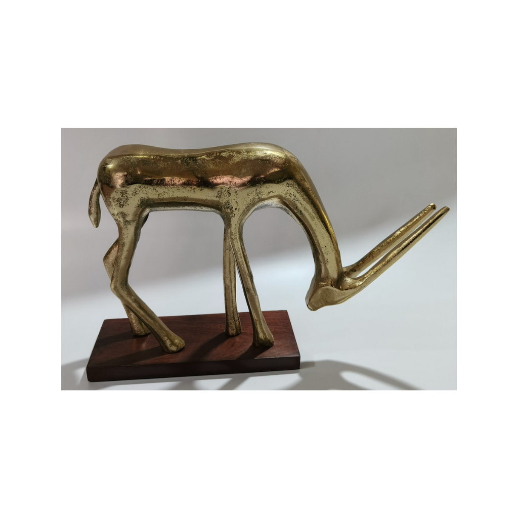 ¡Haz que tus mesas luzcan de otra manera! Decora con esta hermosa cabra de aluminio en una base de madera, perfecta para poner en el centro de tus mesas o en tus muebles auxiliares. Añade un toque divertido y único a tu hogar con este accesorio decorativo. ¡Haz que tus invitados se sorprendan!