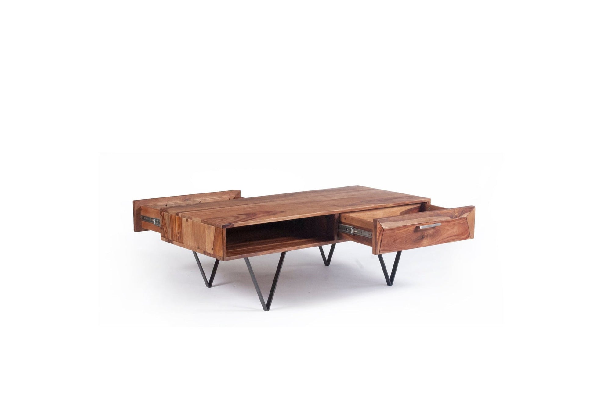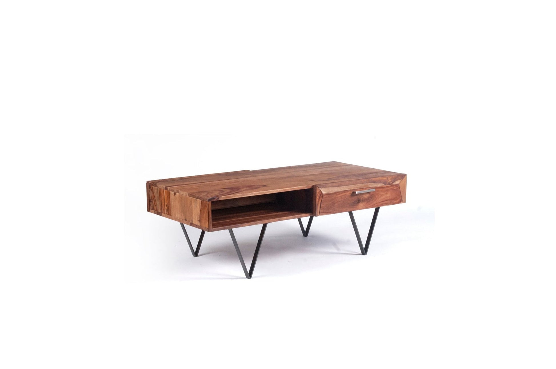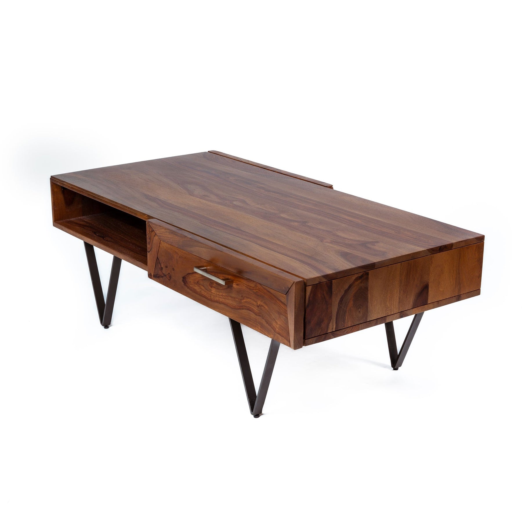 - Esta práctica mesa de centro será perfecta para guardar dispositivos multimedia, libros, revistas o pequeños objetos que quieras tener a la mano. Gracias a su robusta construcción y al material de madera de sheesham, la mesa es extremadamente duradera. El sheesham es una madera dura tropical famosa por sus ricas vetas.