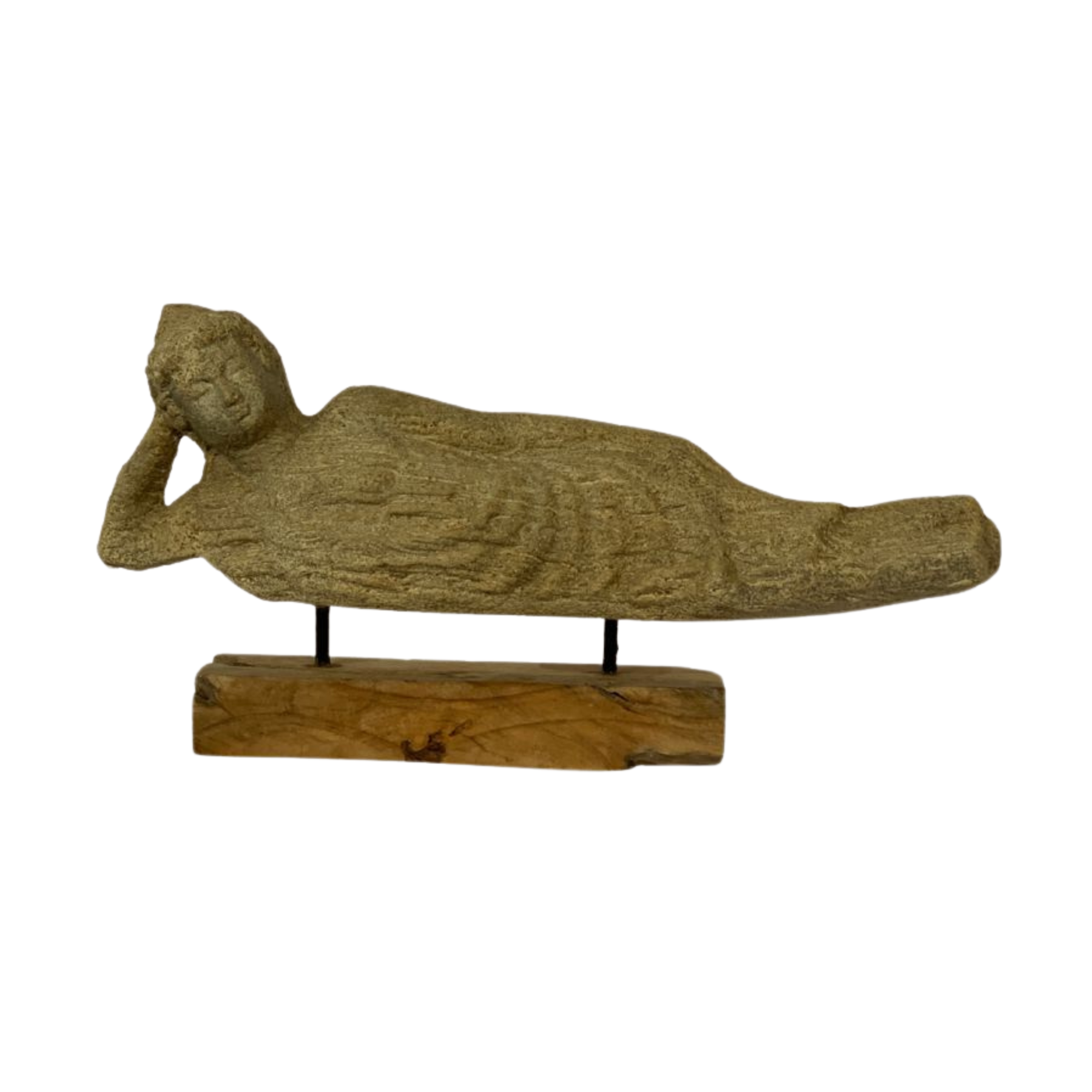Sleeping Buddha on Wooden Stand | 60x173x35 cm