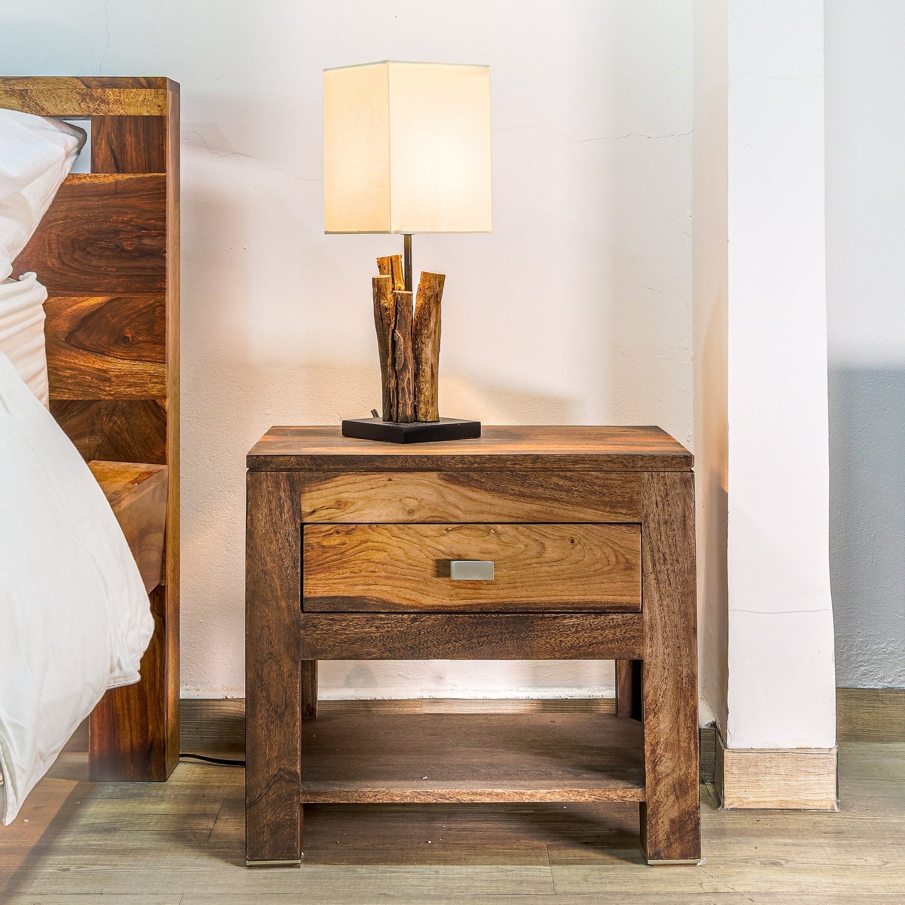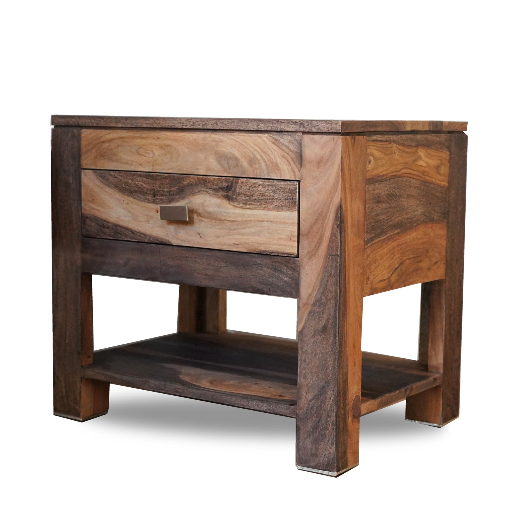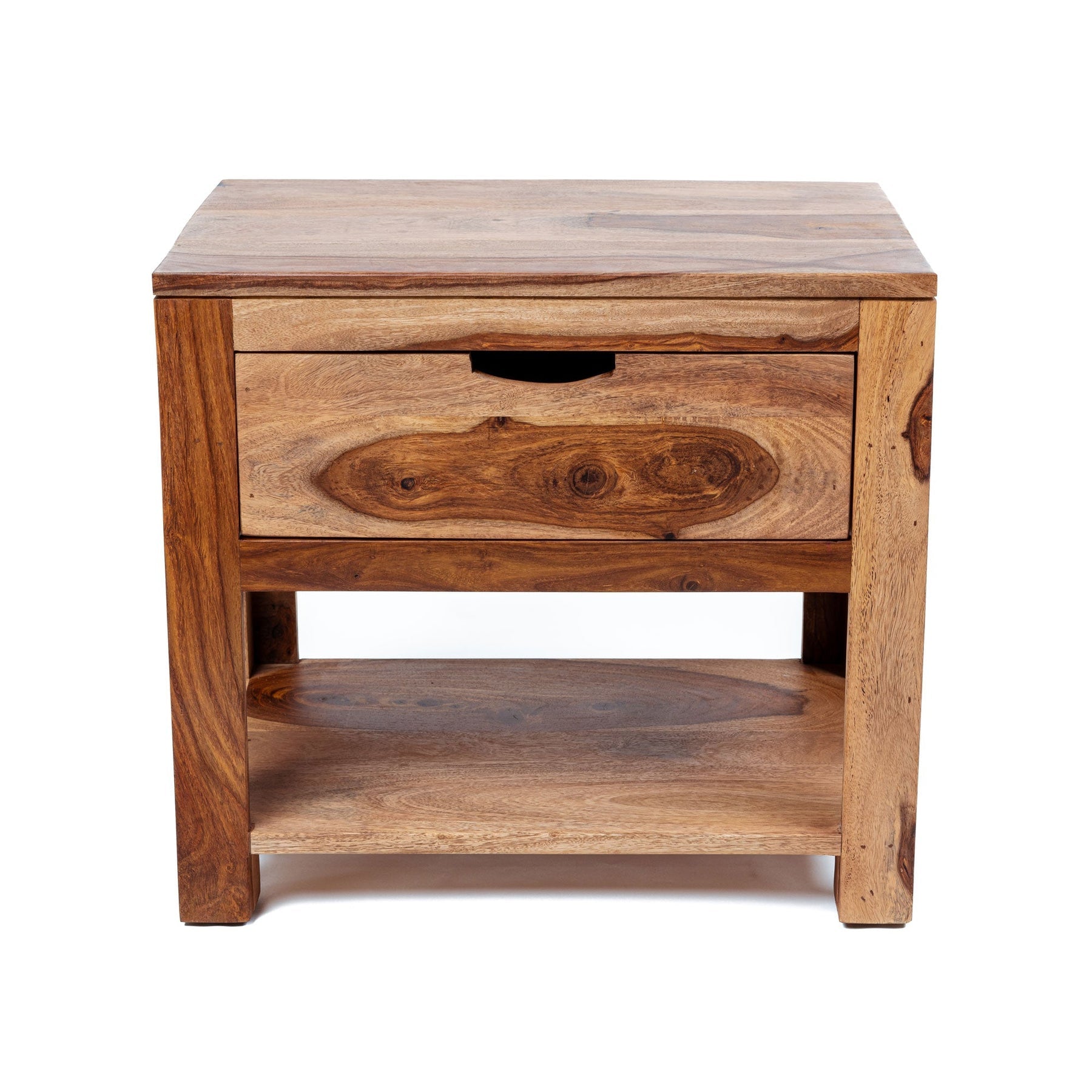Zen Night Table - Wooden Beside Table with Drawer and Storage Shelf